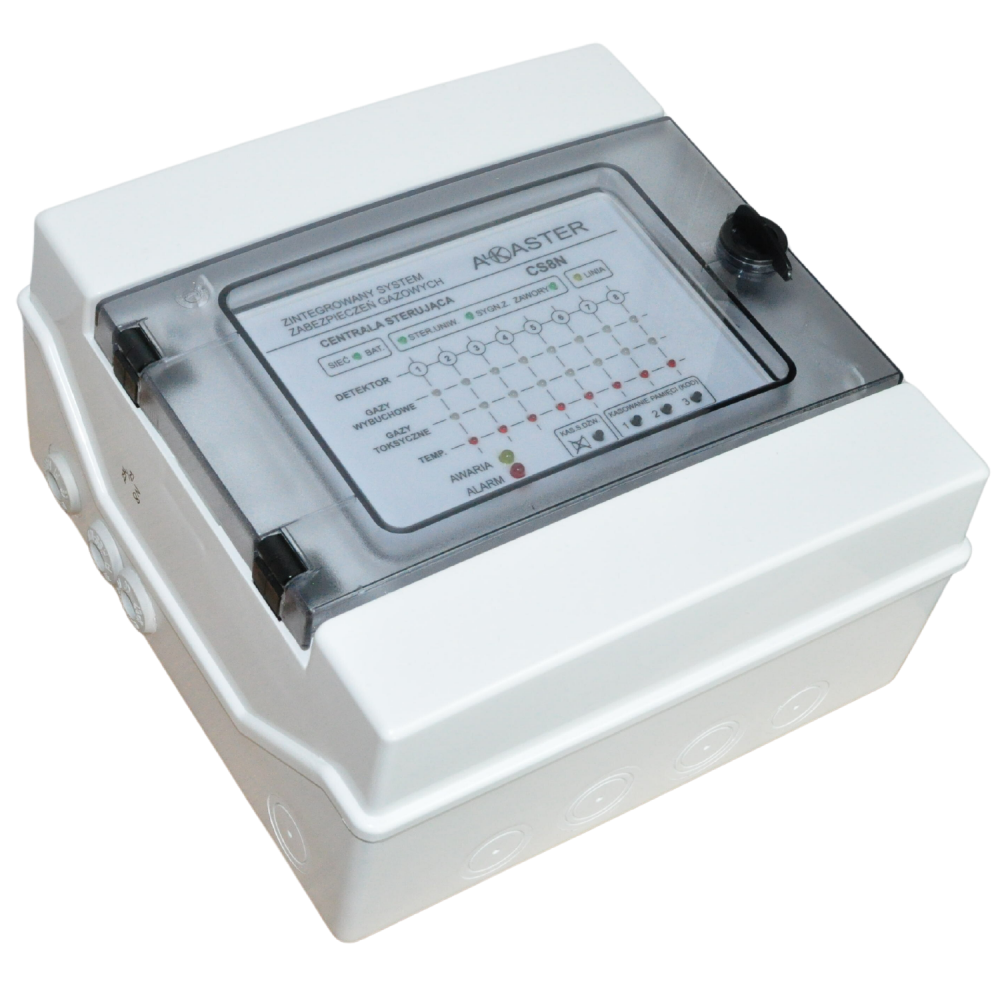 Centrala sterująca CS4N/8N jest główną jednostką Zintegrowanego Systemu Zabezpieczeń Gazowych (ZSZG). Podstawowym jej zadaniem jest zbieranie informacji od detektorów gazu, zainstalowanych w pomieszczeniach w których mogą pojawić się gazy wybuchowe lub toksyczne i przesłanie obrobionych sygnałów do urządzeń wykonawczych takich jak sterowniki zaworowe, sterowniki uniwersalne, sygnalizatory optyczno-akustyczne, tablice informacyjne. Występuje w kilku wersjach, których typ zależy od ilości obsługiwanych detektorów, urządzeń wykonawczych oraz miejsca montażu. Aby podnieść bezpieczeństwo i niezawodność systemu każda centrala posiada wbudowany akumulator 1,2Ah/12V lub 7Ah/12V. Ponadto istnieje możliwość łączenia central ze sobą co powoduje zwiększenie pojemności systemu tzn. ilości podłączonych detektorów oraz urządzeń wykonawczych. W ramach takiego systemu każda centrala posiada równe uprawnienia i wszystkie informacje takie jak alarmy, awarie przesyłane są pomiędzy wszystkimi centralami.